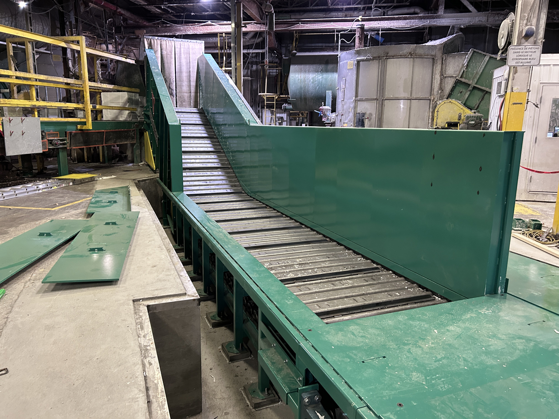 Assure robustesse et facilité d’entretien dans diverses applications, telles que la manutention de résidus de construction et de l’industrie de la ferraille. Nos différents convoyeurs à courroie d’acier sont offerts en plusieurs configurations : horizontale, section inclinée, forme en S, etc. La motorisation requise sera sélectionnée spécialement pour votre application (selon la capacité requise et la densité du matériel à traiter). Des options comme des trémies robustes, des huileurs automatiques et des moteurs avec frein sont également possibles.